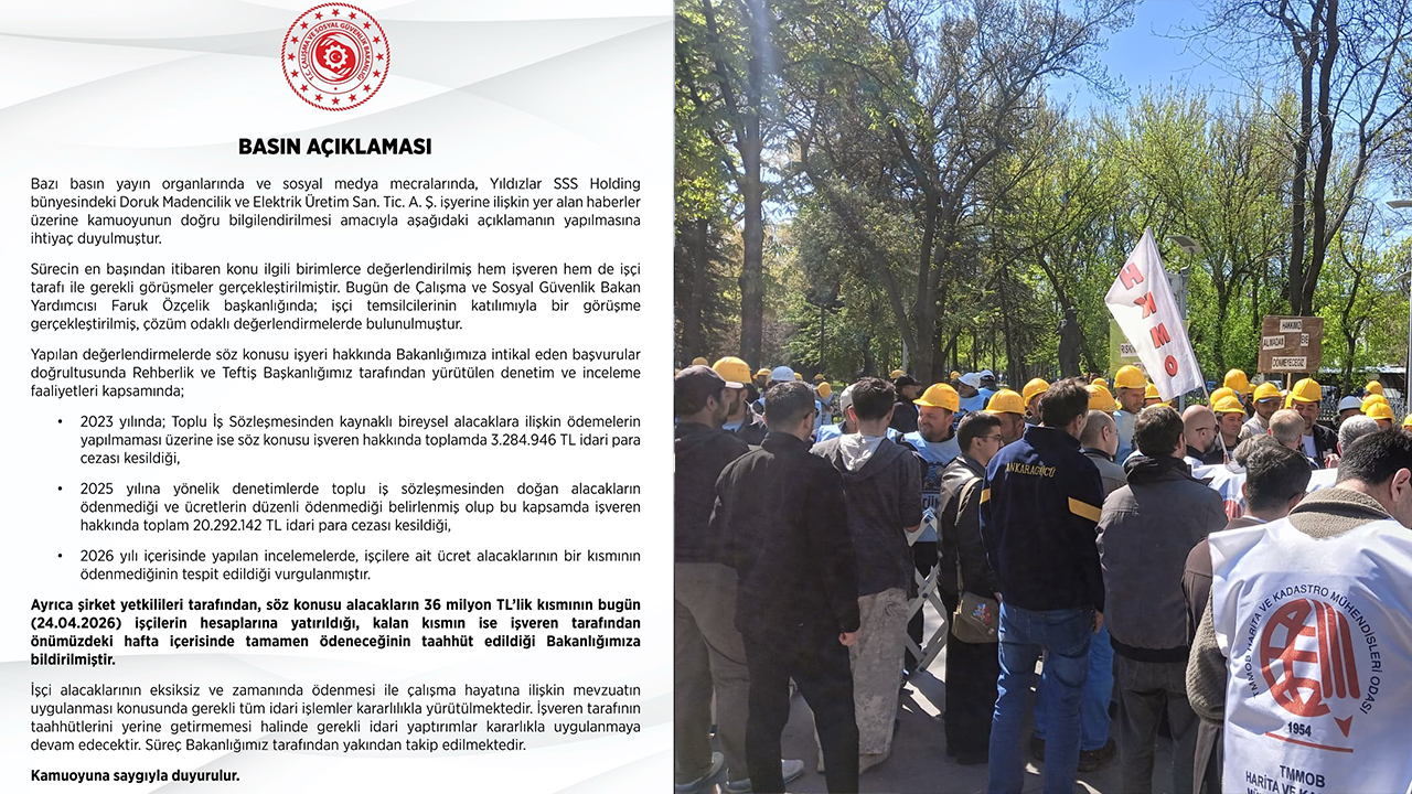 Bakanlık açıklamasında, işçi alacaklarının eksiksiz ve zamanında ödenmesi için gerekli tüm idari işlemlerin kararlılıkla yürütüldüğü ifade edildi. İşverenin taahhütlerini yerine getirmemesi halinde gerekli yaptırımların uygulanmaya devam edeceği kaydedildi.