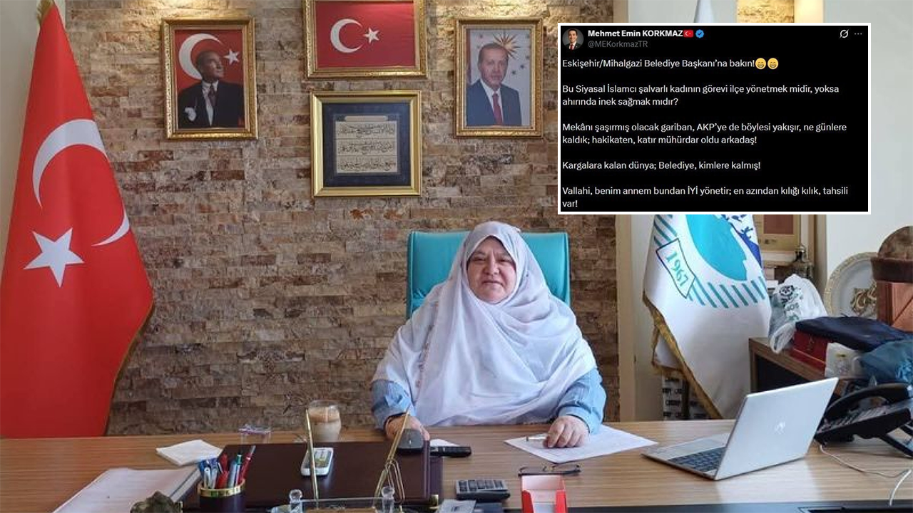 Söz konusu paylaşımda Korkmaz: "Eskişehir/Mihalgazi Belediye Başkanı'na bakın! Bu siyasal İslamcı şalvarlı kadının görevi ilçe yönetmek midir, yoksa ahırında inek sağmak mıdır? Mekanı şaşırmış olacak gariban, AKP'ye de böylesi yakışır. Ne günlere kaldık? Hakikaten katır mühürdar oldu arkadaş! Kargalara kalan dünya, belediye kimlere kalmış? Vallahi benim annem bundan İYİ yönetir. En azından kılığı kılık, tahsili var" ifadelerine yer vermişti.