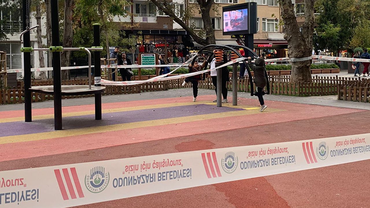 Çocuklar, belediye ekiplerinin parkın etrafını kapatmak için kullandığı şeritlere rağmen oyun oynaması görenleri şaşkına çevirdi. Annelerinin de parkta oyun oynayan çocukların yanında olması dikkatlerden kaçmadı.