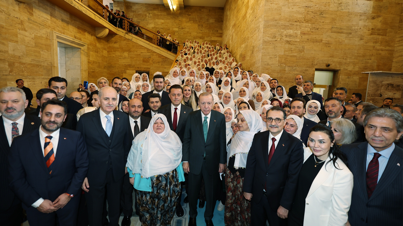 Grup toplantısının ardından Erdoğan, Zeynep Güneş ve beraberindeki kadınlarla hatıra fotoğrafı çektirdi.
