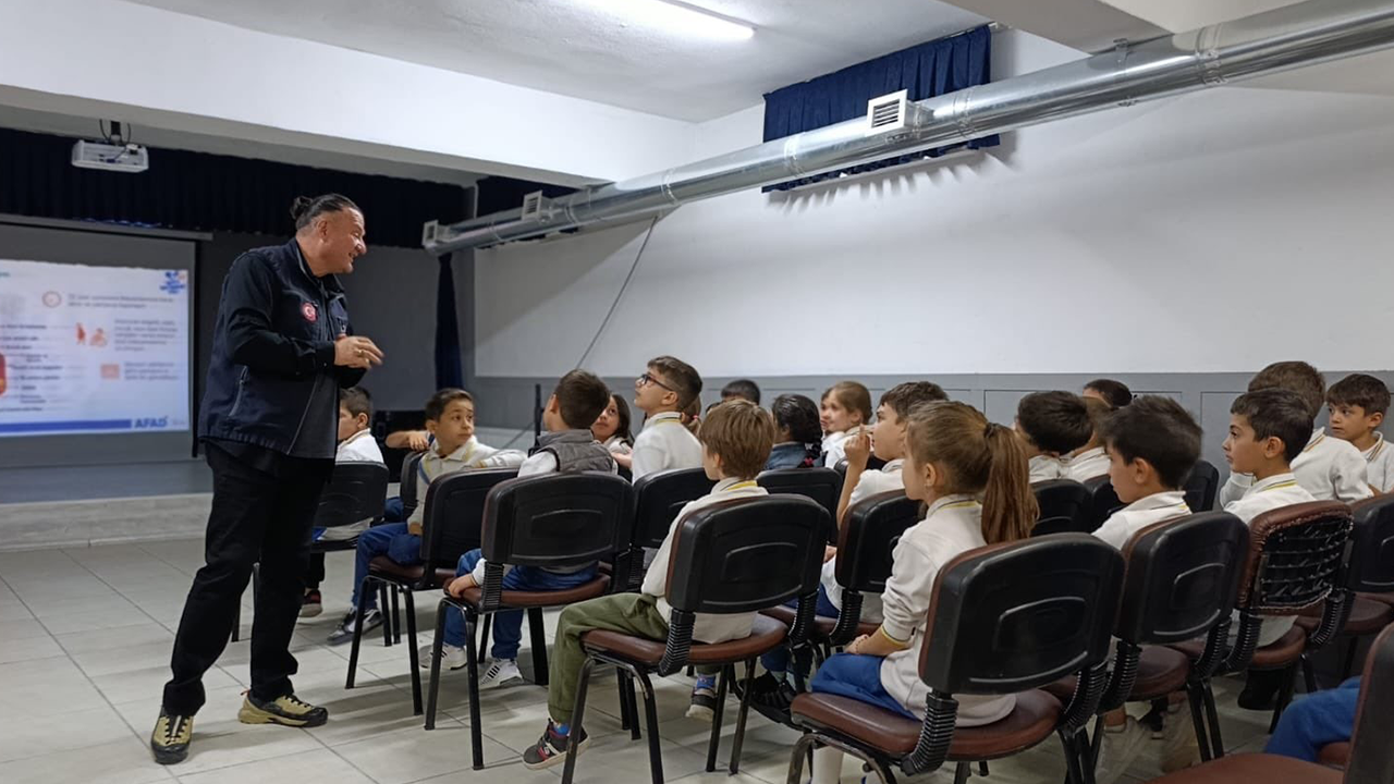Eskişehir Afet ve Acil Durum Müdürlüğü (AFAD) ekipleri, 23 Nisan İlkokulu’nda öğrencilere afet öncesi, sırası ve sonrasında alınması gereken tedbirler hakkında eğitim verdi. Etkinlikte afet bilinci kazandırılması hedeflendi.