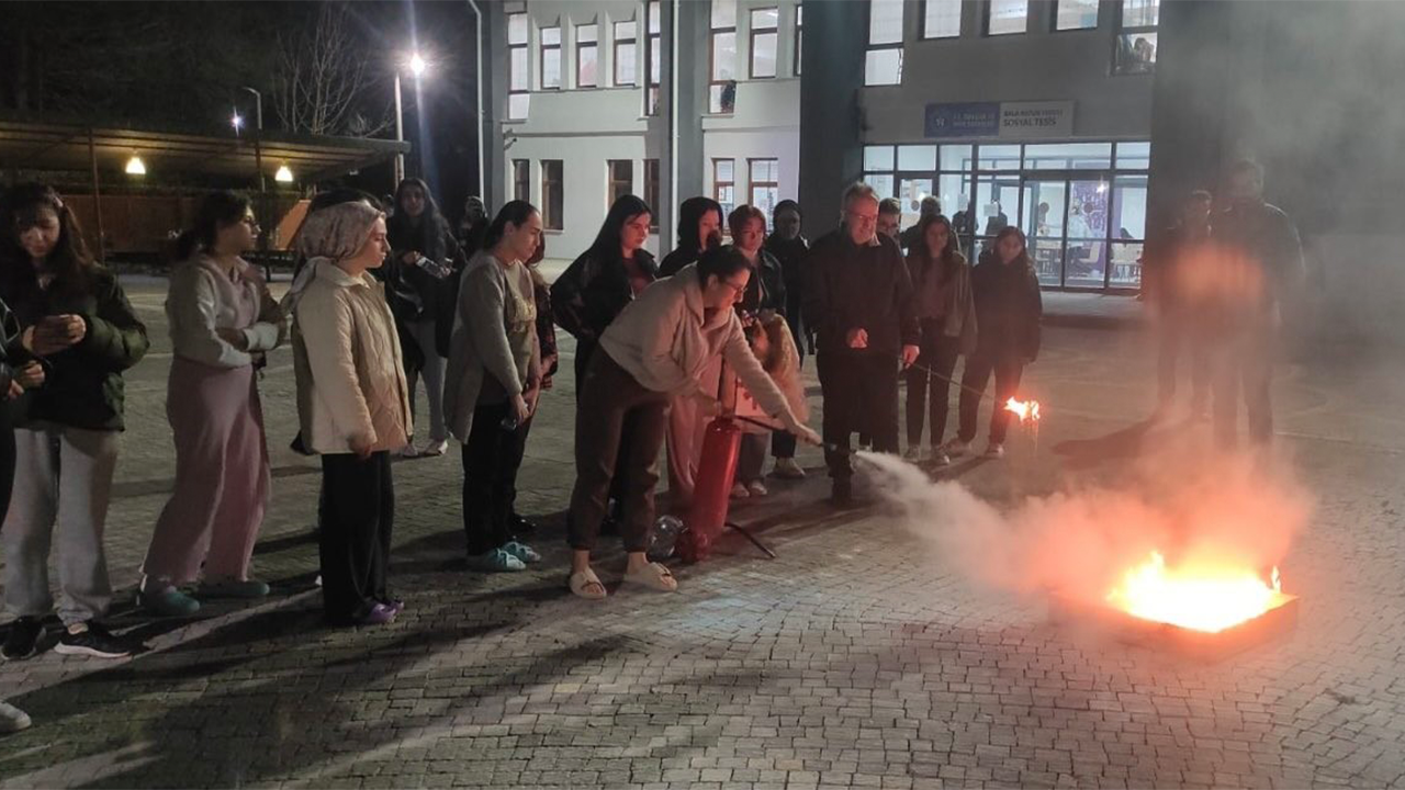 Gençlik ve Spor Bakanlığı (GSB) Eskişehir Yurtları bünyesinde hizmet veren Bala Hatun Yurdu’nda düzenlenen afet farkındalık eğitimi ve tatbikatında, öğrenciler deprem ve yangın anında yapılması gerekenleri uygulamalı olarak öğrendi.
