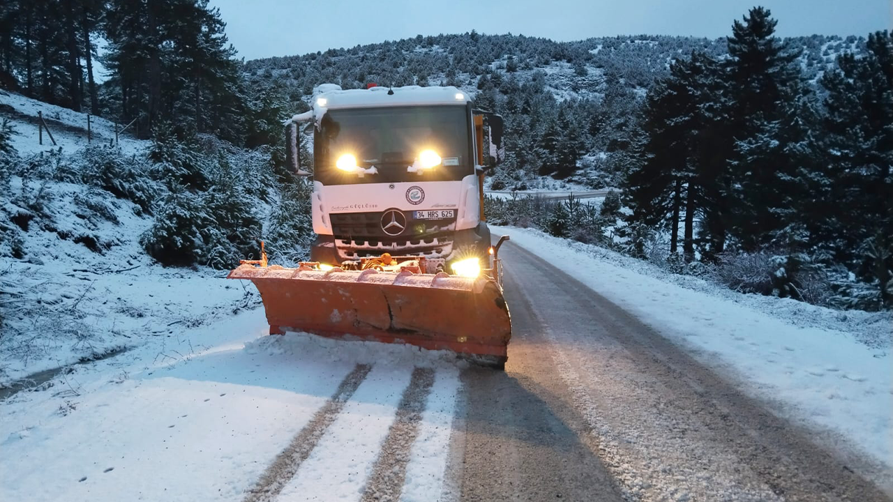 Belediye yetkilileri, vatandaşların araçlarında kış lastiği kullanmaları ve trafik kurallarına azami dikkat göstermelerini istedi.