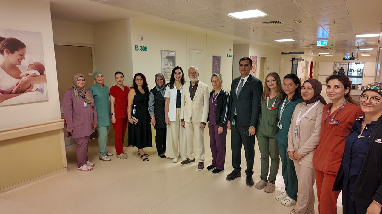 Hastane Başhekimi Dr. Öğr. Üyesi Fatih Alper Ayyıldız ve Sağlık Bakım Hizmetleri Müdürü Esra Güldaş’ın da eşlik ettiği ziyarette; doğumhane, emzirme odaları, çocuk poliklinikleri, kadın doğum servisi, relaktasyon odası ve anne sütü planlama odası gibi birimler gezildi. Bu alanlarda sunulan sağlık hizmetlerine ilişkin yetkililerden bilgi alındı.