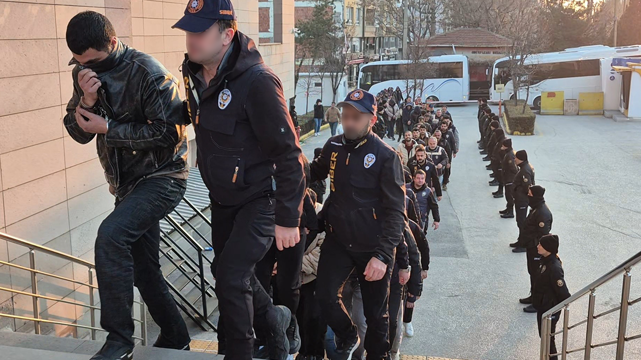 Operasyon kapsamında gözaltına alınan 58 şüpheliden, aralarında 9 kadının da bulunduğu 49 kişinin emniyetteki işlemleri tamamlandı. Şüpheliler, sabah saatlerinde sağlık kontrollerinin ardından geniş güvenlik önlemleri eşliğinde Eskişehir Adliyesi’ne sevk edildi.