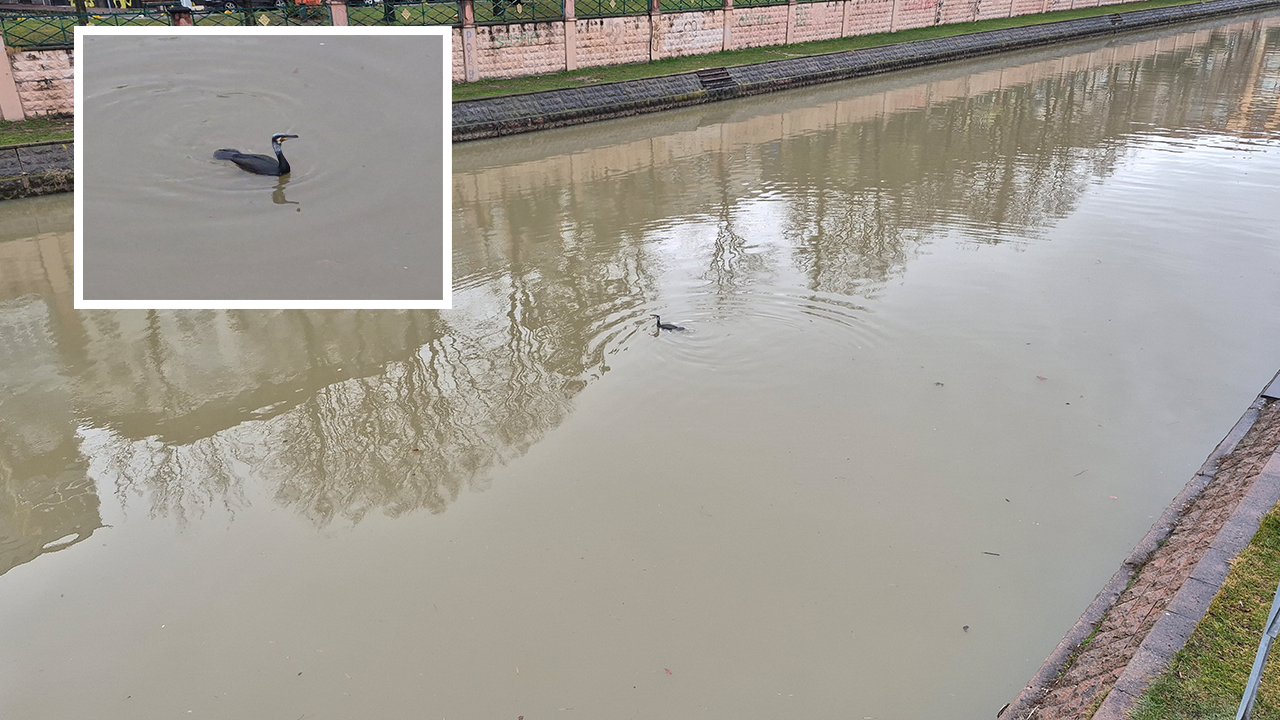 Eskişehir’de Porsuk Çayı’nın Kızılcıklı Mahmut Pehlivan Caddesi ile Atatürk Caddesi’nin kesiştiği noktada geçen bölümünde karabatak cinsi bir kuş görüntülendi. Çay üzerinde bir süre kalan kuşun, avlanmaya çalıştığı gözlendi.