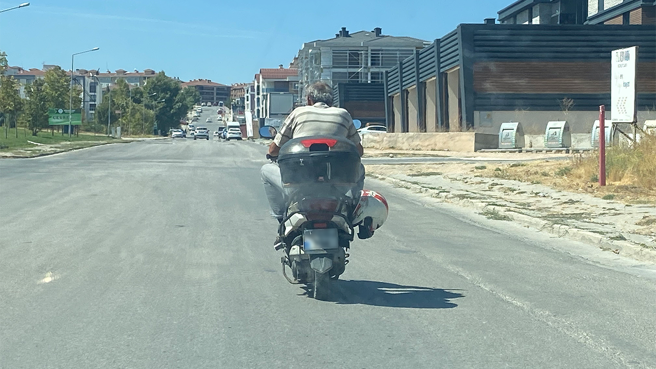 Kaskını kullanmadan yola çıkan sürücü, olası bir kazada ciddi yaralanma riskini göze alırken, çevredeki vatandaşların da tepkisini çekti. Uzmanlar bu tür ihlallerin ağır sonuçlara yol açabileceğini hatırlatıyor.