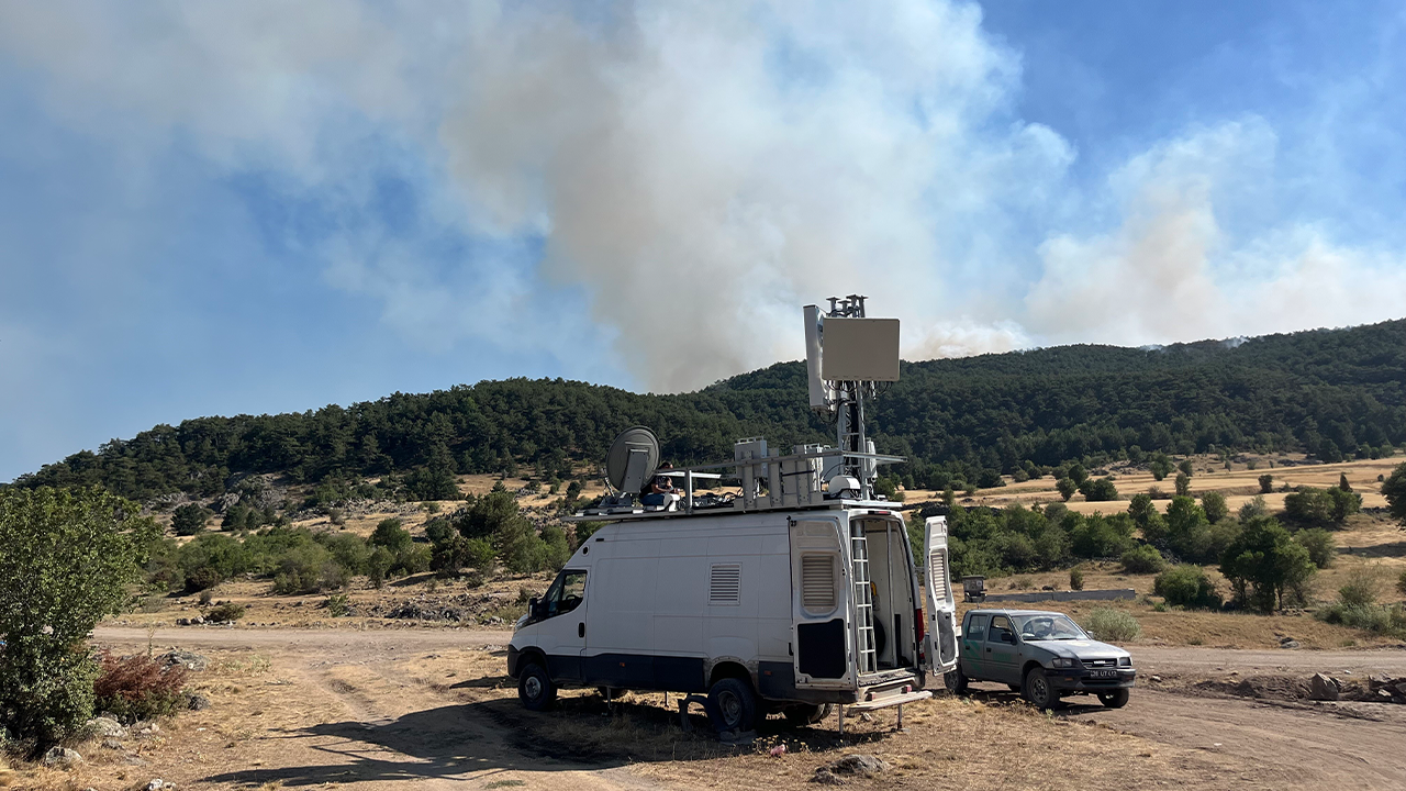 Eskişehir Seyitgazi’de devam eden orman yangınında iletişim sorunu yaşanması üzerine bölgeye mobil baz istasyonu kurularak ekiplerin koordinasyonu sağlandı.