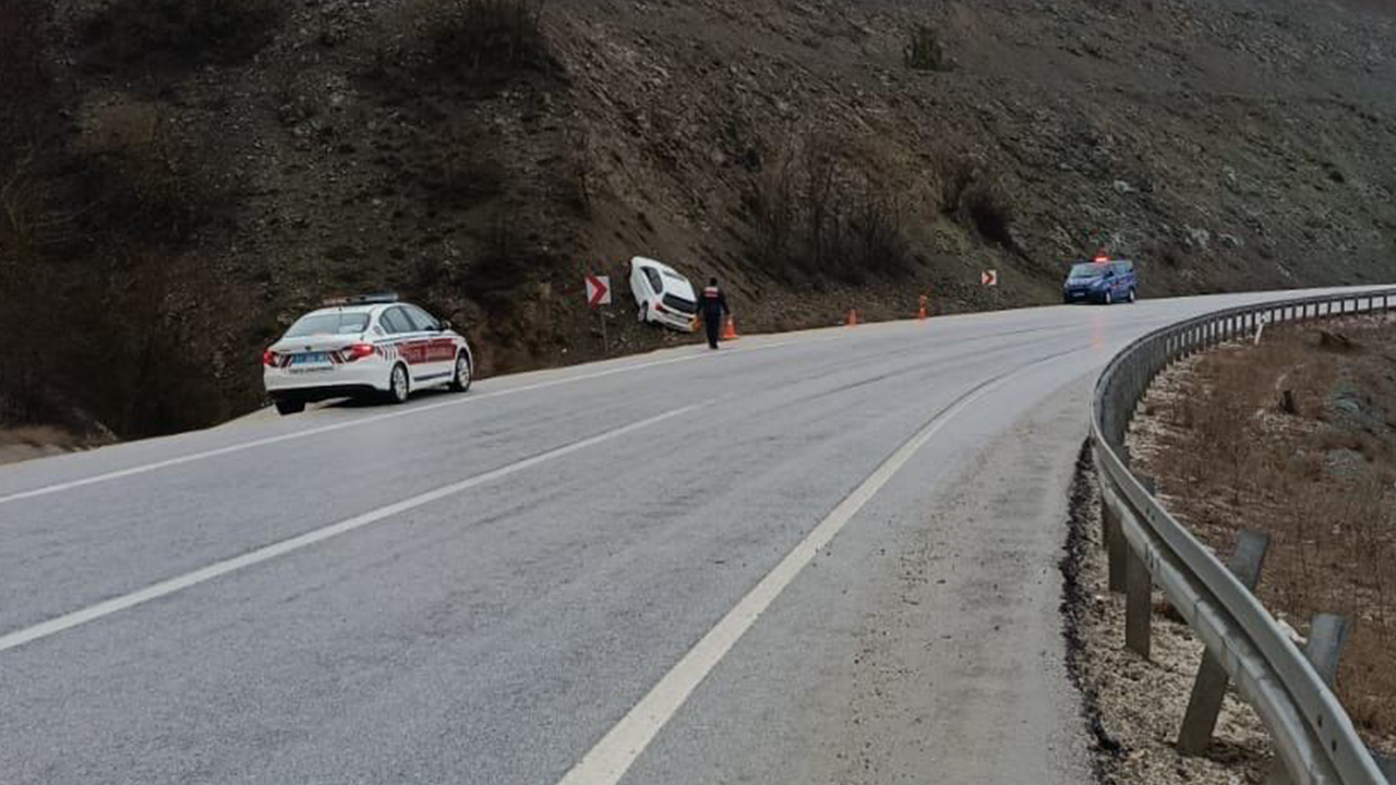 Direksiyon hakimiyetini kaybeden araç, önce yolun sağ tarafındaki demir bariyere çarptı, ardından savrularak yolun sol tarafında bulunan dağlık araziye çıkarak durabildi.