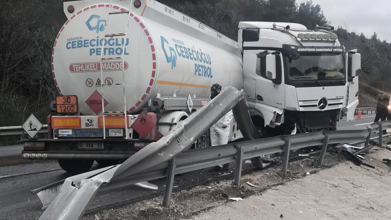 Kontrolden çıkan tanker, bariyerleri aşarak karşı şeride geçti. Karşı yönden araç gelmemesi sayesinde ciddi bir kaza yaşanmadı.