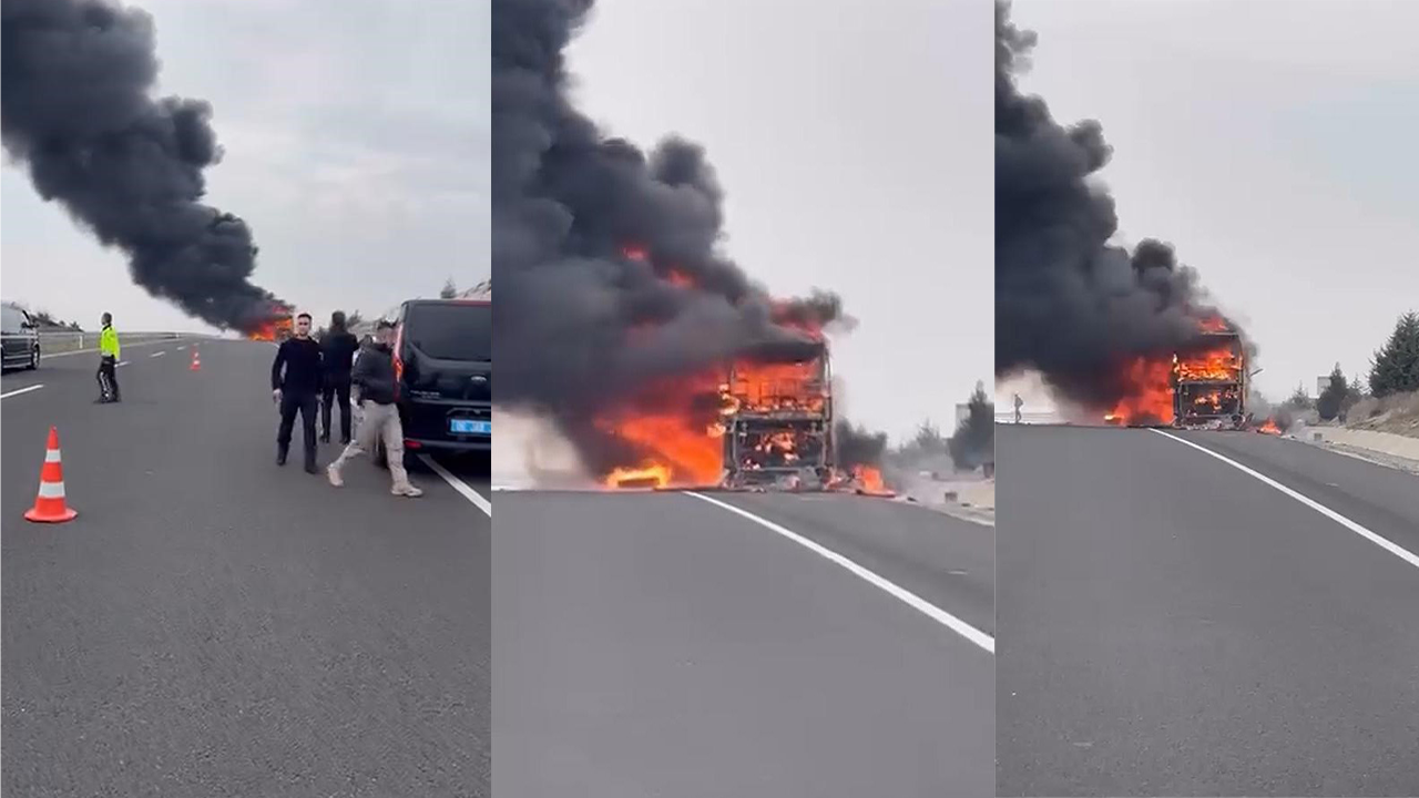 Motor bölümünde başlayan yangın kısa sürede büyüyerek otobüsün tamamını sardı. Durumu fark eden görevliler, otobüsü durdurarak yolcuların tahliyesini sağladı. Yolcular, eşyalarını da alarak otobüsten uzaklaştı.