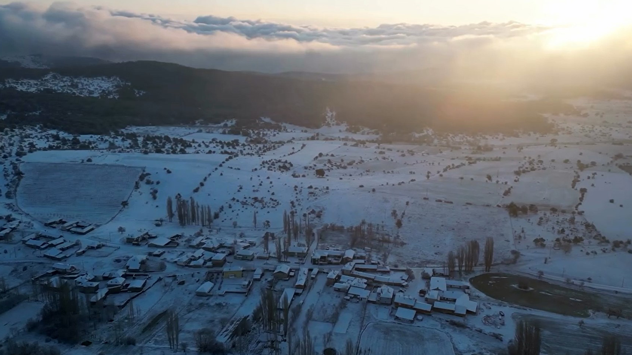 Kar yağışıyla birlikte kırsal mahalle kısa sürede beyaz örtüyle kaplandı. Mahalle sakinleri bu manzara karşısında memnuniyet yaşarken, ortaya kartpostallık görüntüler çıktı. Mahallenin karla kaplı hali dron ile havadan da görüntülendi.