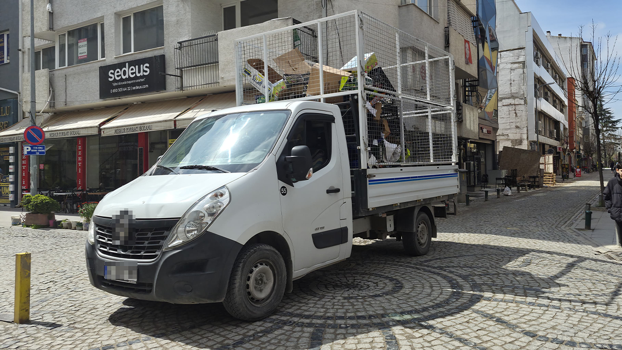 Eskişehir’de dar bir sokakta kurallara aykırı park edilen kamyonet, araç geçişini zorlaştırarak trafiğin aksamasına neden oldu.