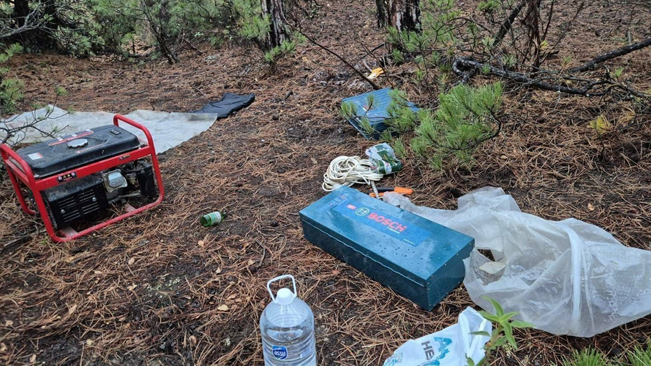 Şüphelilerin kazı yaptığı alanda yapılan aramada; 1 adet jeneratör, 2 adet kırıcı delici matkap, 16 metre elektrik kablosu, 16 metre ip ve çeşitli kazı malzemeleri ele geçirildi. Gözaltına alınan şüpheliler hakkında adli soruşturma başlatıldı.
