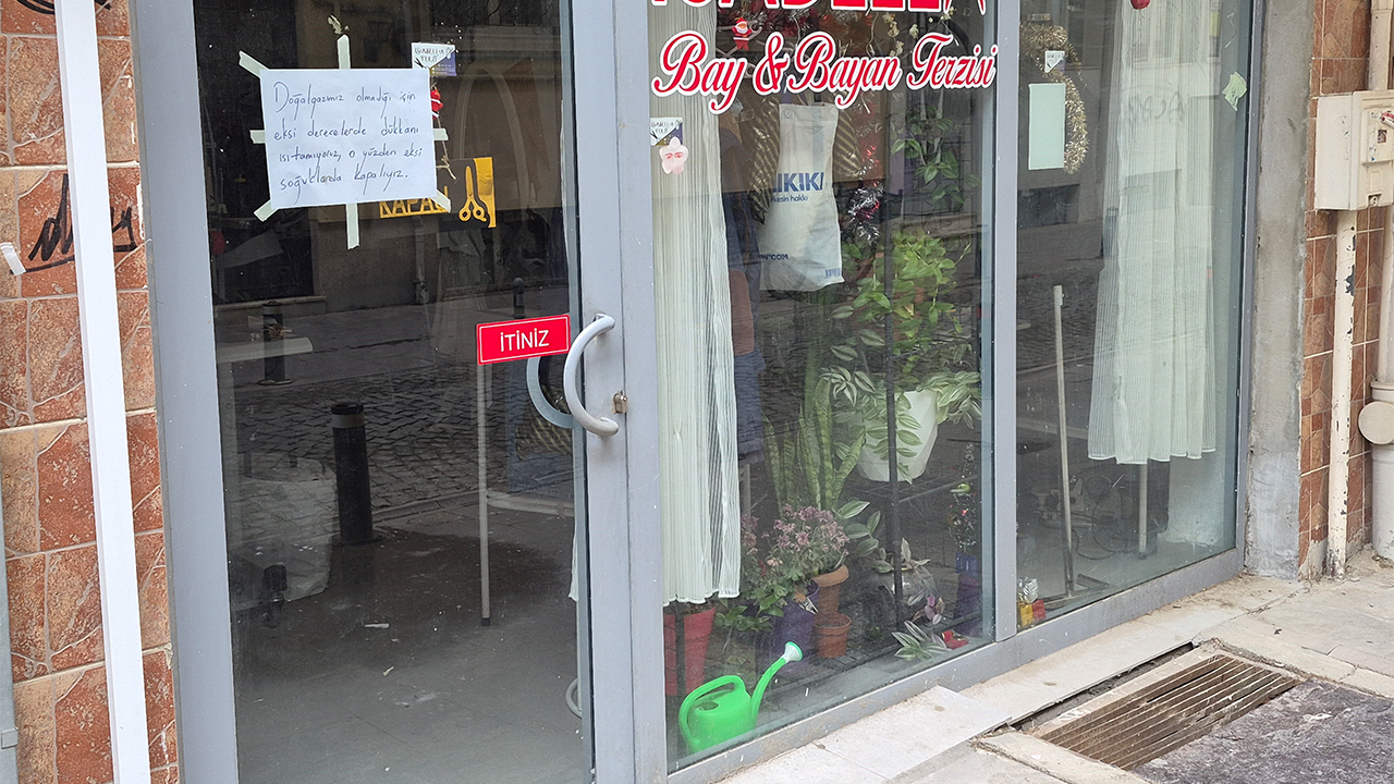 Metin Bey Sokak’ta faaliyet gösteren terzi esnafı, kış günlerinde dükkanını açamıyor. Dükkanın camına asılan kağıtta, “Doğalgazımız olmadığı için eksi derecelerde dükkanı ısıtamıyoruz. O yüzden eksi soğuklarda kapalıyız” ifadeleri yer aldı.