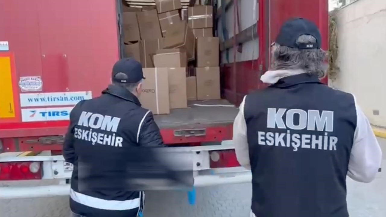 Eskişehir’de polis ekipleri tarafından durdurulan bir tırda 6 milyon 900 bin dal sahte bandrollü makaron ve 960 kilo tütün ele geçirildi. Olayla ilgili bir şüpheli gözaltına alındı.