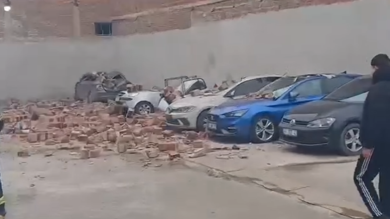 Eskişehir Yenibağlar Mahallesi Hacı Hüsnü Sokak’ta etkili olan şiddetli rüzgar, bir binanın duvarını devirdi. Devrilen yapı parçaları, sokakta park halindeki araçların üzerine düşerek ciddi hasara yol açtı. Olayda 5 araç kullanılamaz hale geldi.