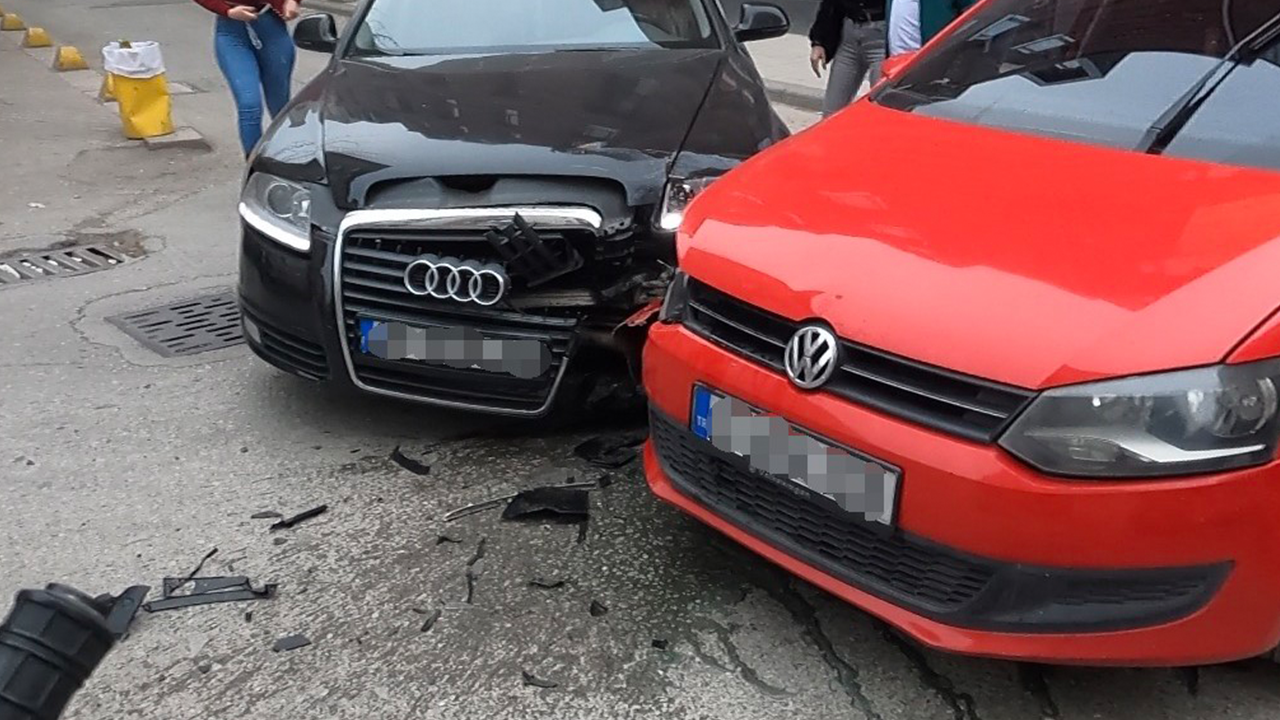 Genez Sokak üzerinde ilerleyen bir otomobile, Talat Paşa Sokak’tan gelen başka bir araç yandan çarptı. Kaza anı, o sırada bölgede bulunan bir motosiklet sürücüsünün kask kamerası tarafından anbean kaydedildi.