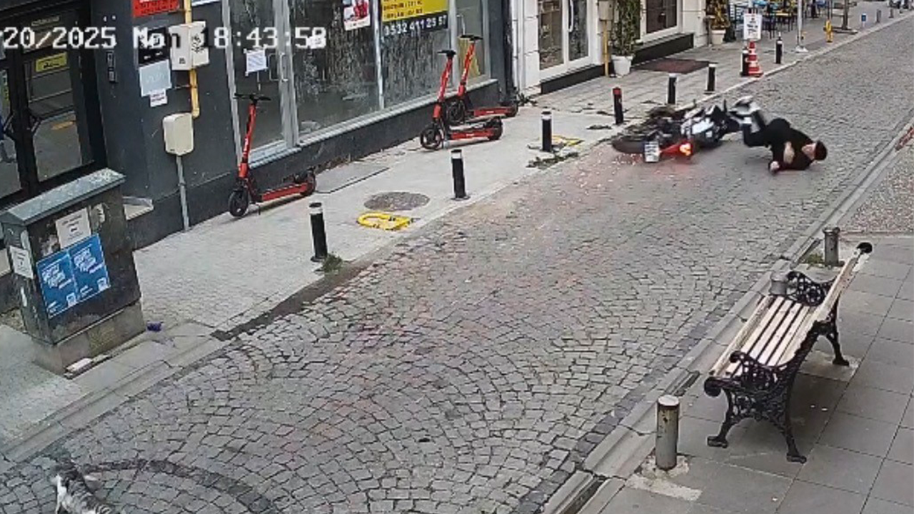 Eskişehir’in İstiklal Mahallesi’nde 19 yaşındaki bir motosiklet sürücüsü, önüne aniden çıkan kediye çarpmamak için manevra yaparken motosikleti devirdi. Kasksız olduğu belirtilen sürücü, başını beton saksıya vurması sonucu ağır yaralandı. Kaza anı çevredeki güvenlik kamerasına yansıdı.