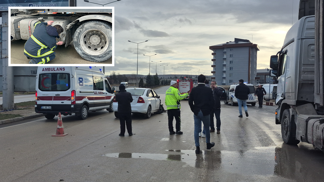 Eskişehir’de yağmur nedeniyle kayganlaşan yolda kontrolden çıkan otomobil, park halindeki tıra çarptı. Kazada tırın yakıt deposu delinerek mazot yola aktı. Olay, Organize Sanayi Bölgesi Teknoloji Caddesi üzerinde meydana geldi.