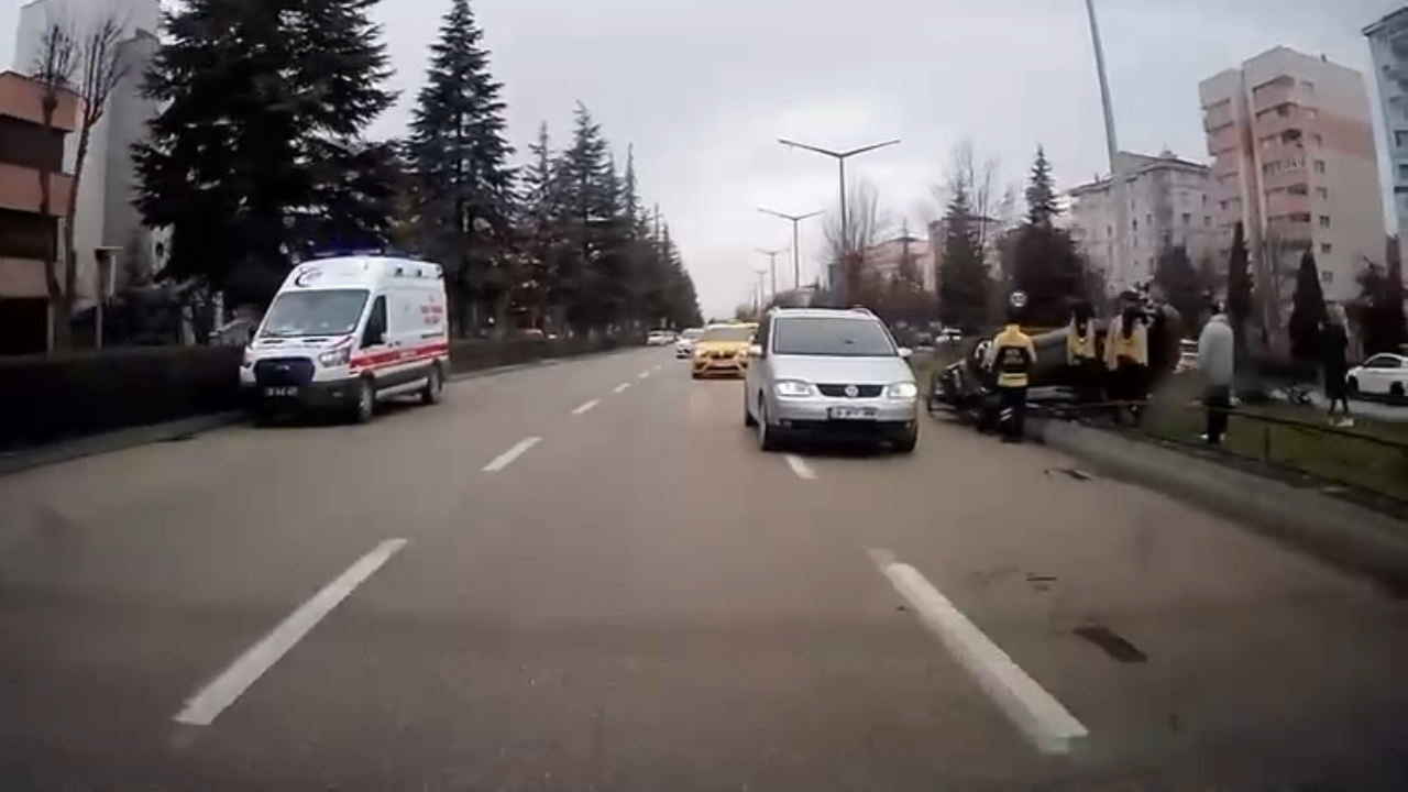 Kontrolden çıkan araç, orta refüje çarptıktan sonra takla attı. Kazanın yaşandığı alan başka bir aracın kamerasına yansıdı.