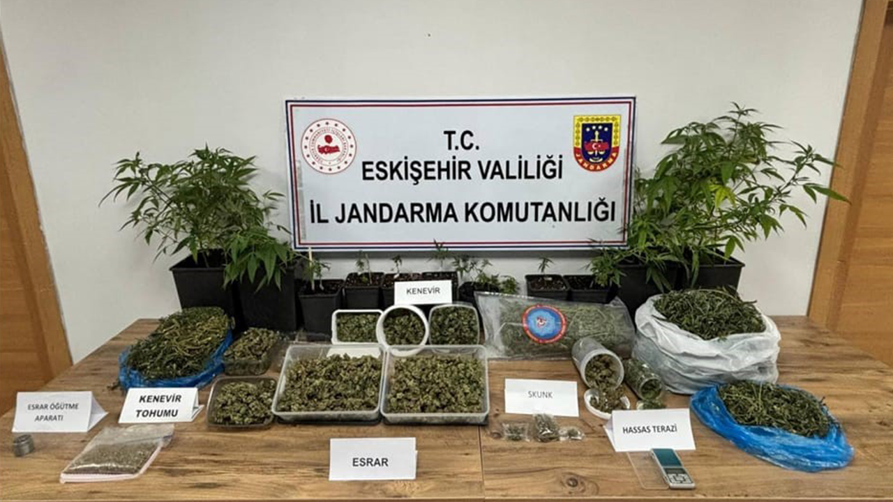 Yapılan aramalarda 3 bin 743 gram esrar, 18,5 gram skunk, 15 kök kenevir bitkisi, 157 gram kenevir tohumu, 1 adet hassas terazi, 1 adet öğütme aparatı ile birlikte iklimlendirme malzemeleri ele geçirildi.