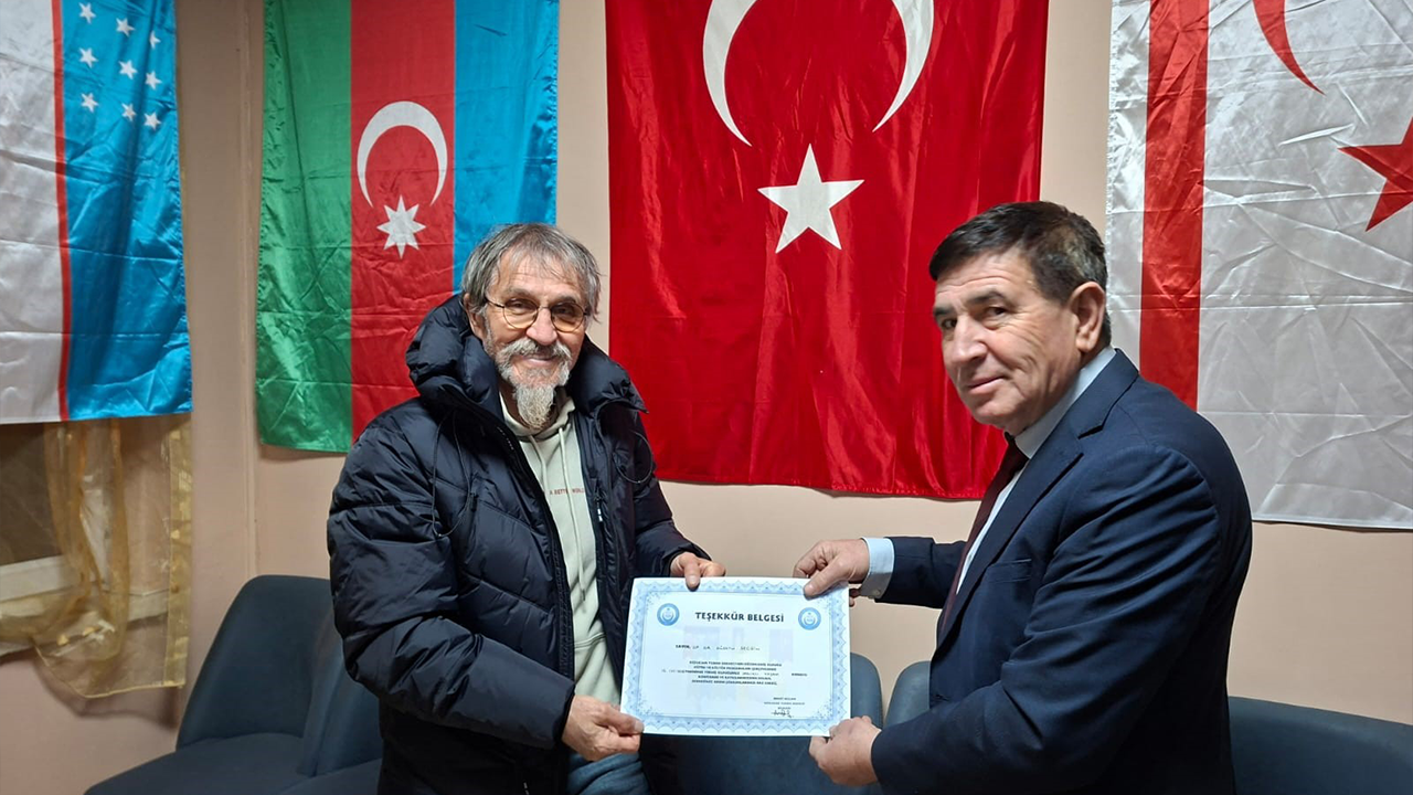 Programın sonunda Eskişehir Kızıl Elma Turan Derneği Başkanı Ahmet Hızlan, konferansa katkılarından dolayı Opr. Dr. Hüseyin Seçkin’e plaket ve teşekkür belgesi takdim etti.