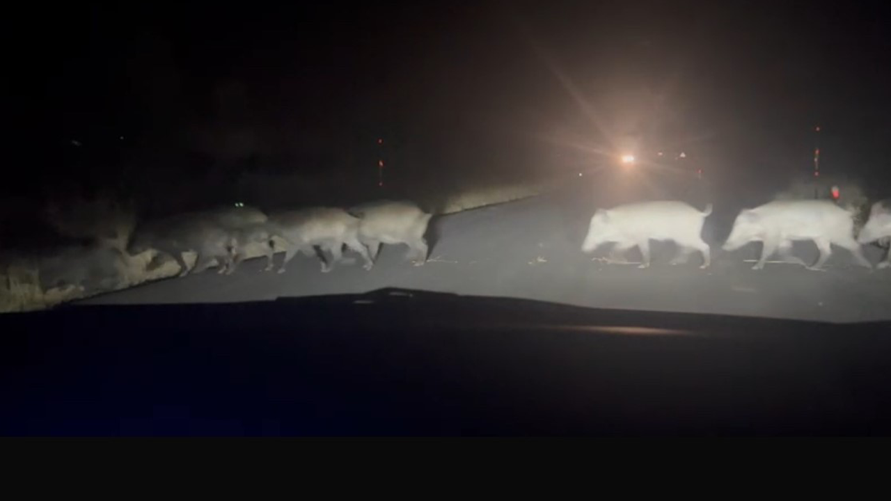 Sürücünün cep telefonuyla kaydettiği görüntülerde, domuzların boşalan yoldan güvenli şekilde karşıya geçtiği görüldü. O anlar sosyal medyada da ilgi gördü.