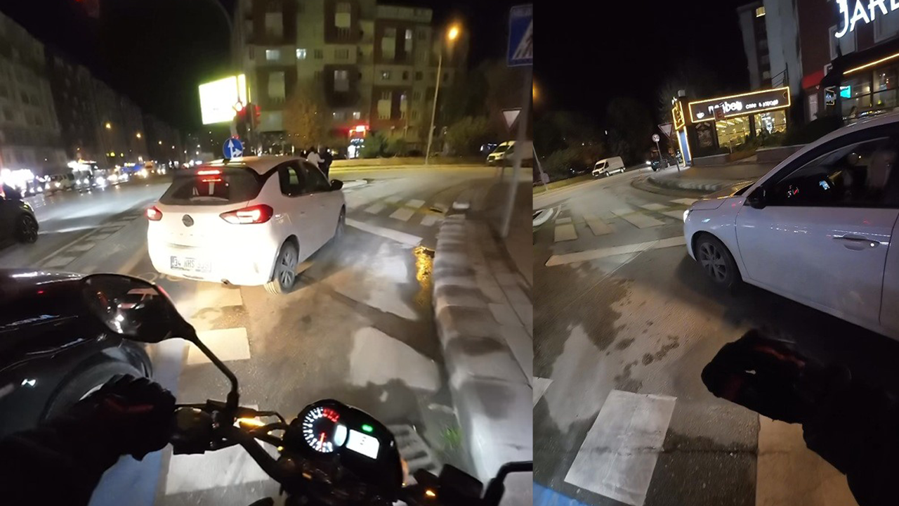 O sırada motosikletiyle ilerleyen Berat Akbaş, durumu fark ederek kadın sürücüyü uyardı. Uyarının ardından otomobilin hareket etmesiyle birlikte yan yoldaki trafik yeniden akmaya başladı.