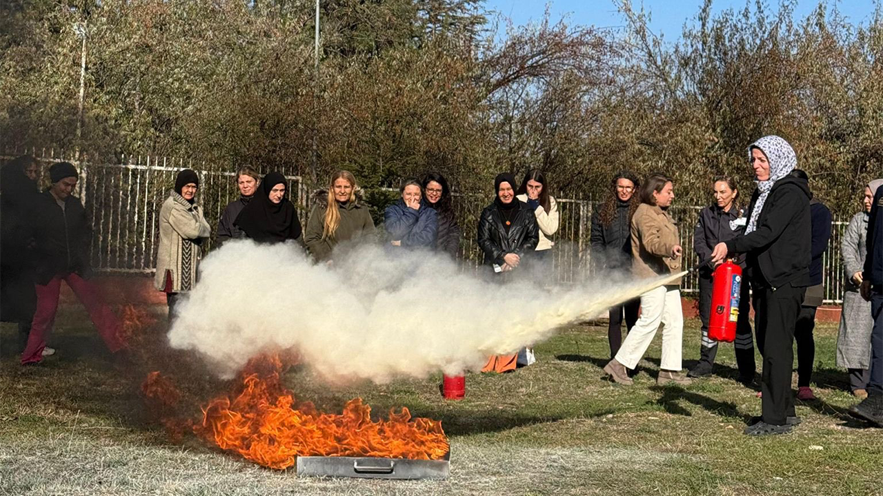 Eğitim kapsamında ayrıca acil durumlarda tahliye prosedürlerinin doğru şekilde uygulanması üzerinde duruldu. Personelin olası bir yangın anında hızlı ve güvenli hareket edebilmesi hedeflendi.