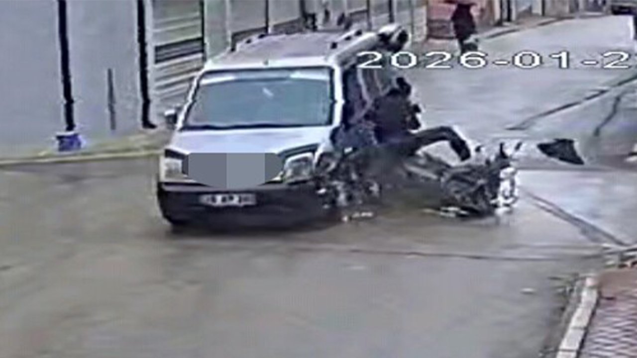 Güvenlik kamerası görüntülerinde, motosiklet sürücüsünün panelvan aracın yan camına çarptığı, çarpmanın etkisiyle kaskının çıktığı ve sert şekilde yere düştükten sonra hareketsiz kaldığı anlar yer aldı. Panelvan sürücüsü Y.F.’nin yaşadığı panik ve endişe de kameralara yansıdı.