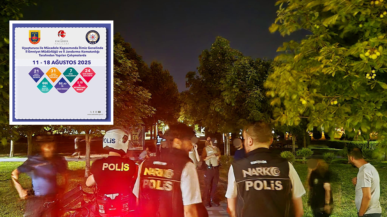 Eskişehir Valiliği, uyuşturucuyla mücadele kapsamında 11-18 Ağustos 2025 tarihleri arasında yürütülen çalışmalara ilişkin verileri kamuoyuyla paylaştı. Açıklamaya göre, İl Emniyet Müdürlüğü ve İl Jandarma Komutanlığı ekipleri, il genelinde toplam 21 ayrı uyuşturucu olayına müdahale etti.