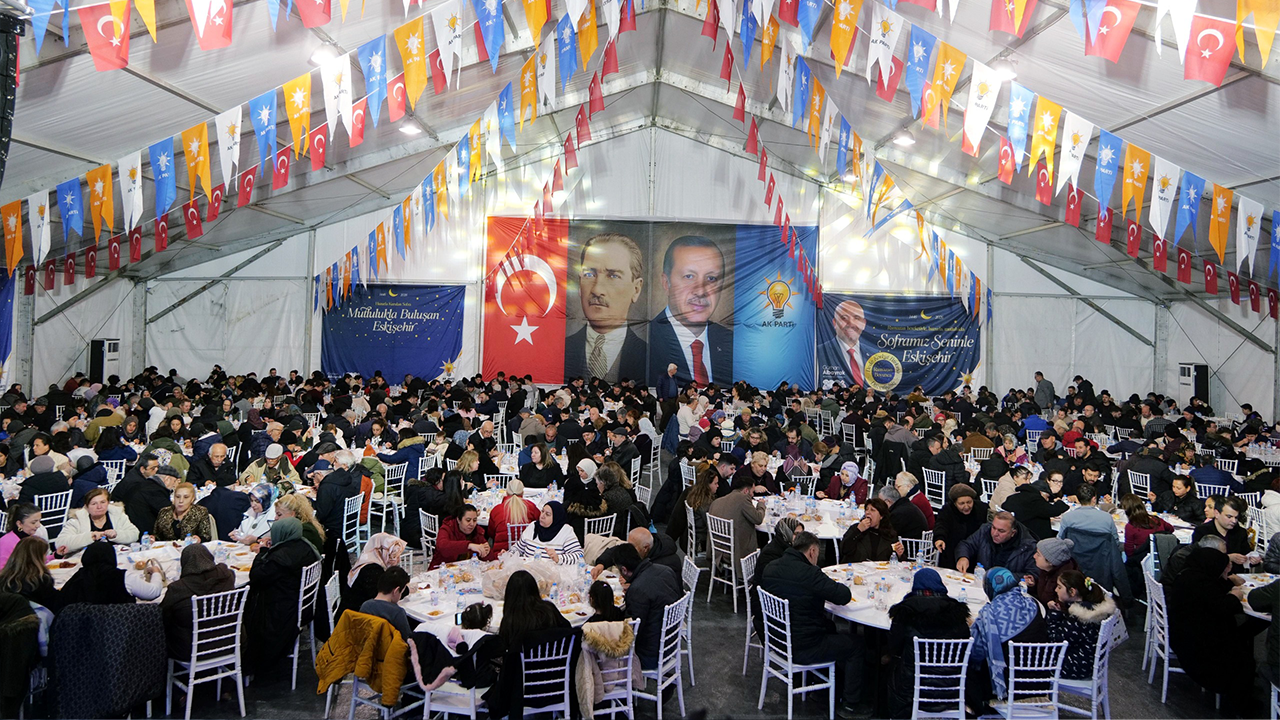 AK Parti Eskişehir İl Başkanlığı tarafından Ramazan ayı dolayısıyla düzenlenen program kapsamında Dede Korkut Parkı’nda iftar organizasyonu gerçekleştirildi. “Soframız Seninle Eskişehir” sloganıyla kurulan iftar sofrasında yüzlerce vatandaş bir araya geldi. Programda vatandaşlar akşam ezanının okunmasıyla birlikte dualar eşliğinde oruçlarını açtı.
