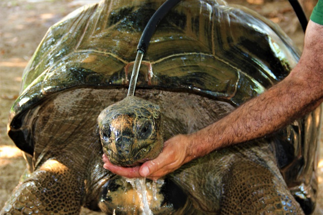 Aldabra kaplumbağalarının Türkiye’de sadece hayvanat bahçelerinde görülebildiğini vurgulayan Aydın, “Bunlar dışarıda yaşamazlar. Doğada sadece bizim kara kaplumbağalarımız var. Aldabra kaplumbağaları Hint Okyanusu adalarında yaşıyor. Türkiye’de bulunmazlar, sadece hayvanat bahçelerinde görebiliriz. Bunlar diğer hayvanlara göre daha uzun yaşıyorlar. Çünkü bunlara kimse dokunmuyor. Ne diğer hayvanların bunlara bir zararı var ne bunların diğer hayvanlara bir zararı var. Bu hayvanlara sadece insanlar zarar veriyor” şeklinde konuştu