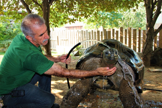 22 yıl önce hayvanat bahçesine getirilen ve şu anda buranın en yaşlı üyesi olan Tuki’nin geldiği günden beri bakımını Faruk Yalçın Hayvanat Bahçesi Sürüngenler Bölümü Başbakıcısı Reşat Aydın yapıyor.