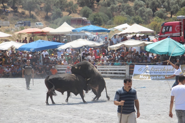 Çatımların da oldukça dengeli yapıldığı güreşlerde boğalar, kilosu, boynuz durumu ve oyunlarına göre eşleştirildi. Germencik Belediye Başkanı Fuat Öndeş’in de izlediği güreşler dostluk içerisinde geçerken, zaman zaman rakibinden korkup kaçan boğalar heyecanlı anlar yaşanmasına neden oldu.