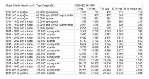 1-3 yaş 1301-1600 cc aralığı Matrahı 46 bin 300 – 81 bin 100 lira arası 2020 MTV'si: 2021 lira