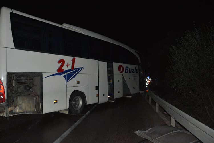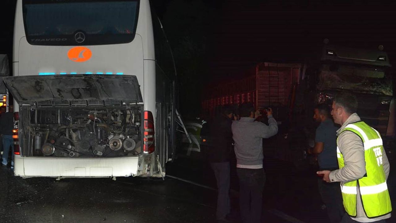 Bu sırada otobüse arkadan gelen bir tır çarptı. Çarpışmanın etkisiyle kontrolden çıkan otobüs yol kenarındaki bariyerlere çarptı. Kaza sonucu otobüste bulunan 3 kişi ve tır sürücüsü yaralandı. Yaralılar 112 Acil Servis ekipleri tarafında hastaneye kaldırıldı.