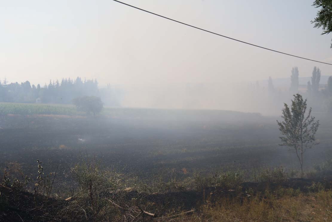 Tepebaşı ilçesine bağlı Sazova Mahallesi Ziraat Caddesi yakınlarında bulunan 40 dönüm büyüklüğündeki arpa ekili tarlada yangın çıktı. Tarlanın yanındaki sitede ikamet eden vatandaşlar, araziden çıkan dumanı görünce yangının evlere ulaşmasını engellemek için söndürmek için bahçe hortumlarıyla alevlere müdahale etti.