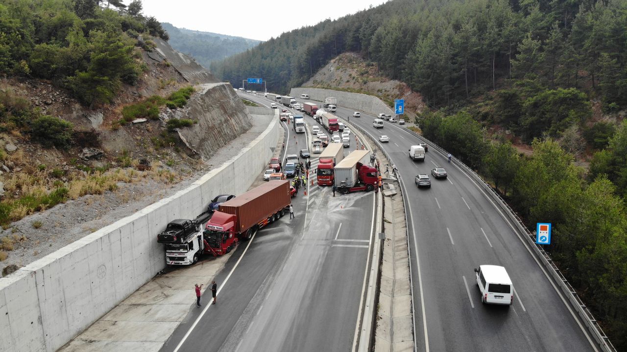 İzmir-Manisa karayolunun Sabuncubeli Tüneli çıkışında İzmir'den Manisa'ya doğru seyir halinde olan 35 U 9609 plakalı tır, sağanak yağış nedeniyle kayganlaşan yolda sürücüsünün direksiyon hakimiyetini kaybetmesi sonucu yan dönerek yolun solundaki bariyerlere çarparak durabildi. Tırın hemen arkasından gelen 42 VK 401 plakalı otomobil de hızını alamayarak tıra arkadan çarptı.