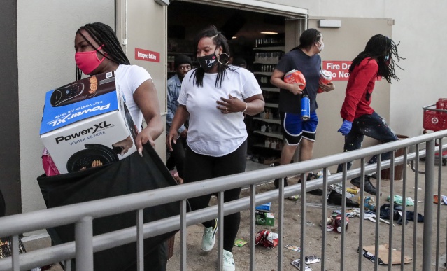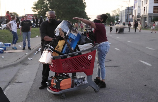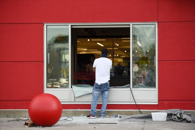 Protestocular gösterilerin ikinci gününde polis araçları ve iş yerlerinin camlarını kırarken, dükkanları yağmalamaya başladı. Kentteki Target adlı büyük bir mağazanın yağmalandığı anlar kameraya yansıdı. Gösteriler şiddet olaylarına dönerken, protestocular yağmalamak için girdikleri dükkanlara zarar da verdi. Bazı iş yerlerinin rafları kırılırken, bazı iş yerleri ateşe verildi. İnşaat halindeki bir bina ise ateşe verilmesi sonucu çöktü.