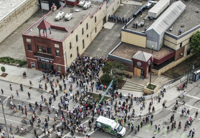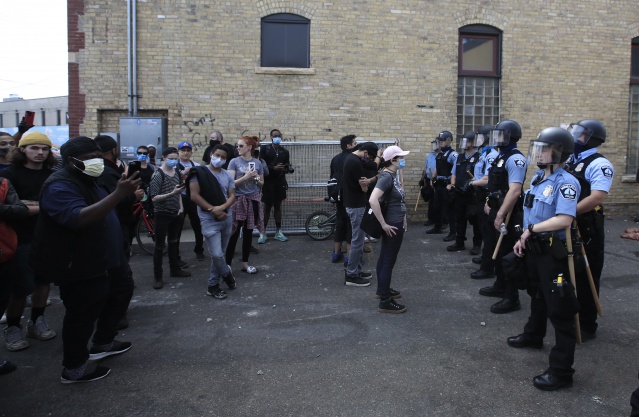 Eyalette tansiyon yükselmeye devam ederken, kalabalık bir grup 3. bölgedeki Minneapolis Polis Merkezi'nde toplanarak binaya saldırdı. Polis, gruba biber gazı ile müdahale etmeye çalıştı ancak başarılı olamadı. Minneapolis Belediye Başkanı Jacob Frey, kentteki durumun kontrolden çıktığını ve yerel polise destek amacıyla bölgeye 50 askerin gönderildiğini bildirdi.