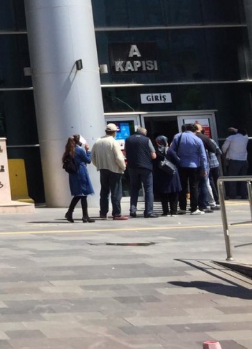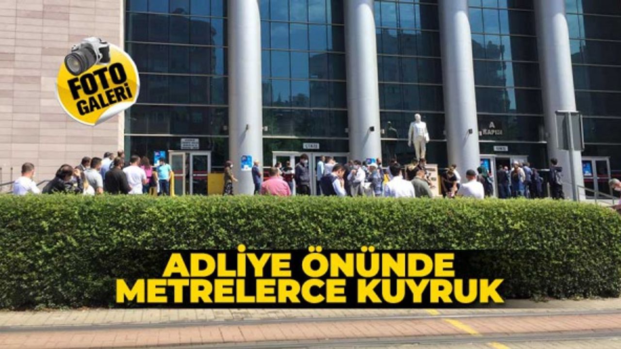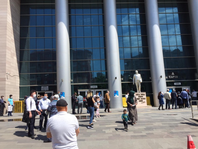 Ateşleri ölçülerek ve sıkı kontrol altında adliye binasına vatandaşlar alınırken, adliye önünde de metrelerce kuyruk oluşuyor. Çok sayıda vatandaş kuyrukta bekledikten sonra adliyeye girebiliyor.