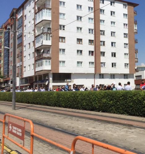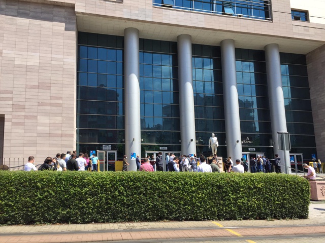 Eskişehir Adliyesi'nde duruşmalar devam ederken, adliye önündeki metrelerce kuyruk da gün boyu uzuyor.