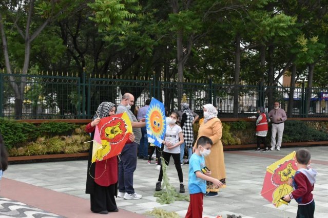 Şenlik havasında geçen uçurtma etkinliğinde çocuklar ve aileleri gönüllerince eğlendiler.
