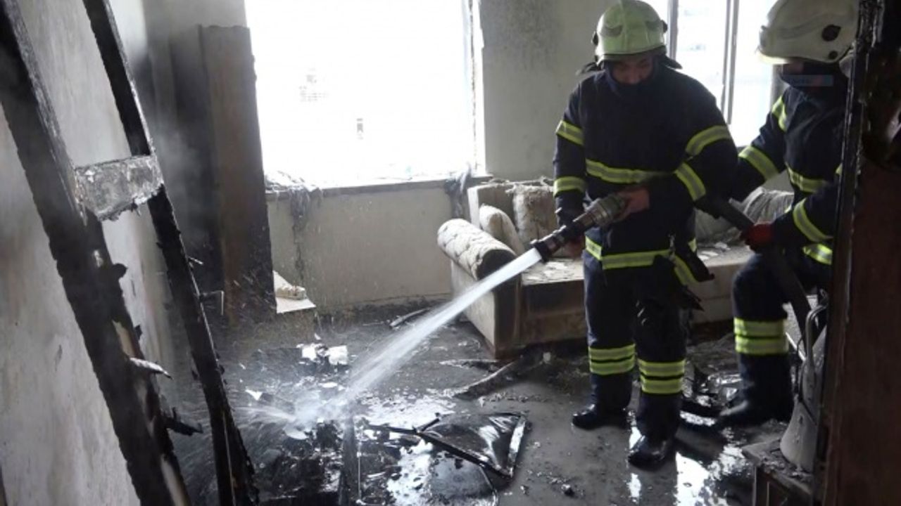 Öte yandan, yangın sonrası alevlerin ve dumanların yükseldiği dairenin penceresinin yerinden sökülüp aşağıya düşme anı bir vatandaş tarafından cep telefonuyla kaydedildi.