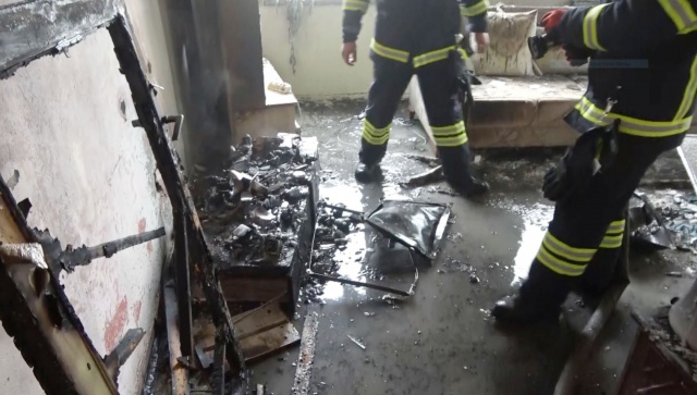 Alevlerin etrafa saçılması sonucu çıkan yangın bir anda büyüdü. Alevler içinde kalan televizyonun patlaması sonucu da evin penceresi yerinden sökülüp aşağıya düştü. Evde mahsur kalan aile bireylerinden bazıları balkona çıkarak yardım istedi.