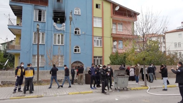 Aksaray’da evde benzin dökülerek tutuşturulmak istenen sobanın parlaması sonucu yangın çıktı. Alevlerin sıçradığı televizyonun da patladığı yangında, evin penceresi yerinden sökülüp aşağıya düştü.