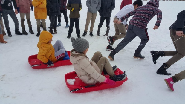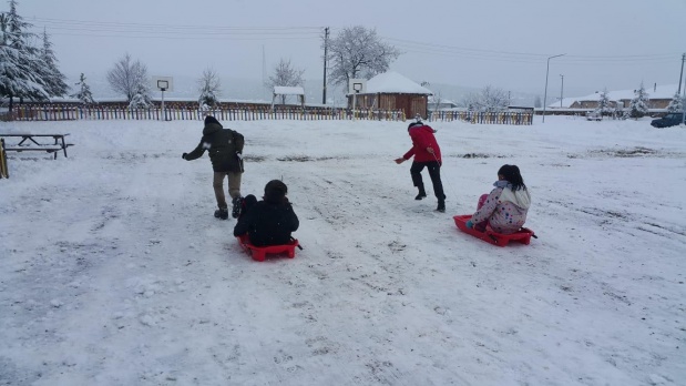 Öğrenciler, alınan kızaklarla, teneffüs ve serbest zamanlarda yağan karın mutluluğu hep birlikte yaşadılar. Han İlçe Milli Eğitim Müdür Vekili Ertaş; ''Okul idarecileri ve öğretmenlerinin çocukların istekleri doğrultusunda bir araya gelerek kendi aralarında topladıkları paralarla aldığımız kızaklarla çocuklarımızın mutluluklarına ortak olduk'' diye belirtti.