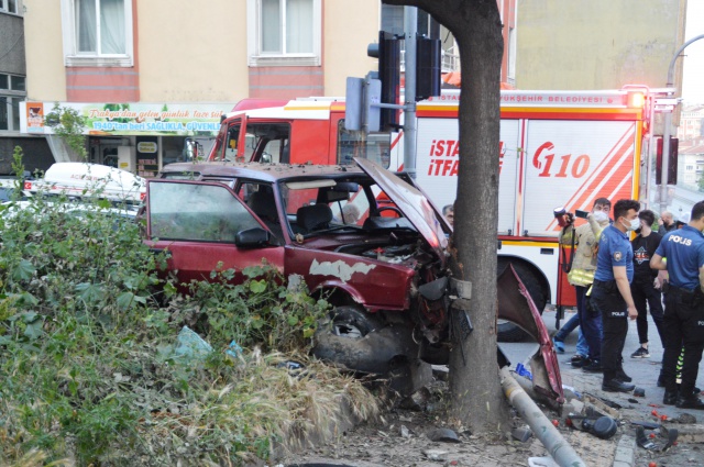 Bayrampaşa’da aşırı hız yapan sürücü, direksiyon hâkimiyetini kaybetmesi sonucu önce trafik ışığına daha sonrada ağaca çarparak durabildi.